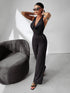 The Champagne jumpsuit is the essence of elegance and class. Made from the highest quality stretchy fabric, it perfectly fits the figure, accentuating its best features. The top is subtly adorned with a tie and a deep neckline, adding a feminine touch. The open back adds a touch of lightness and sex appeal. The flared trousers allow for freedom of movement and add a touch of elegance. Beautiful embroidery with the brand's logo adorns the entire piece, emphasizing the luxurious character of this unique jumpsuit. The perfect choice for evenings out and special occasions that will remain in your memory long after the event.